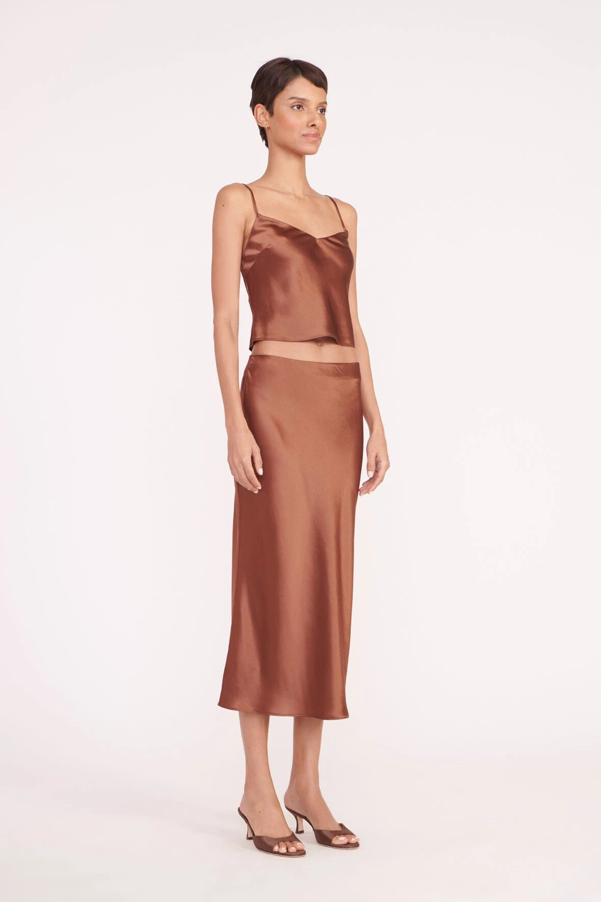 The Brigitte is a kitten heel open toe mule crafted in sleek satin.