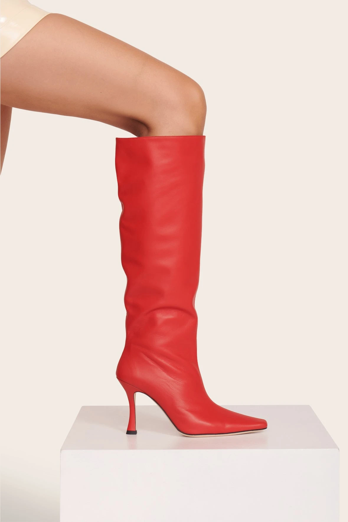 An updated high heel boot in rich bold leather. The Camiย can be dressed up for night or wornย casually during daytime.ย