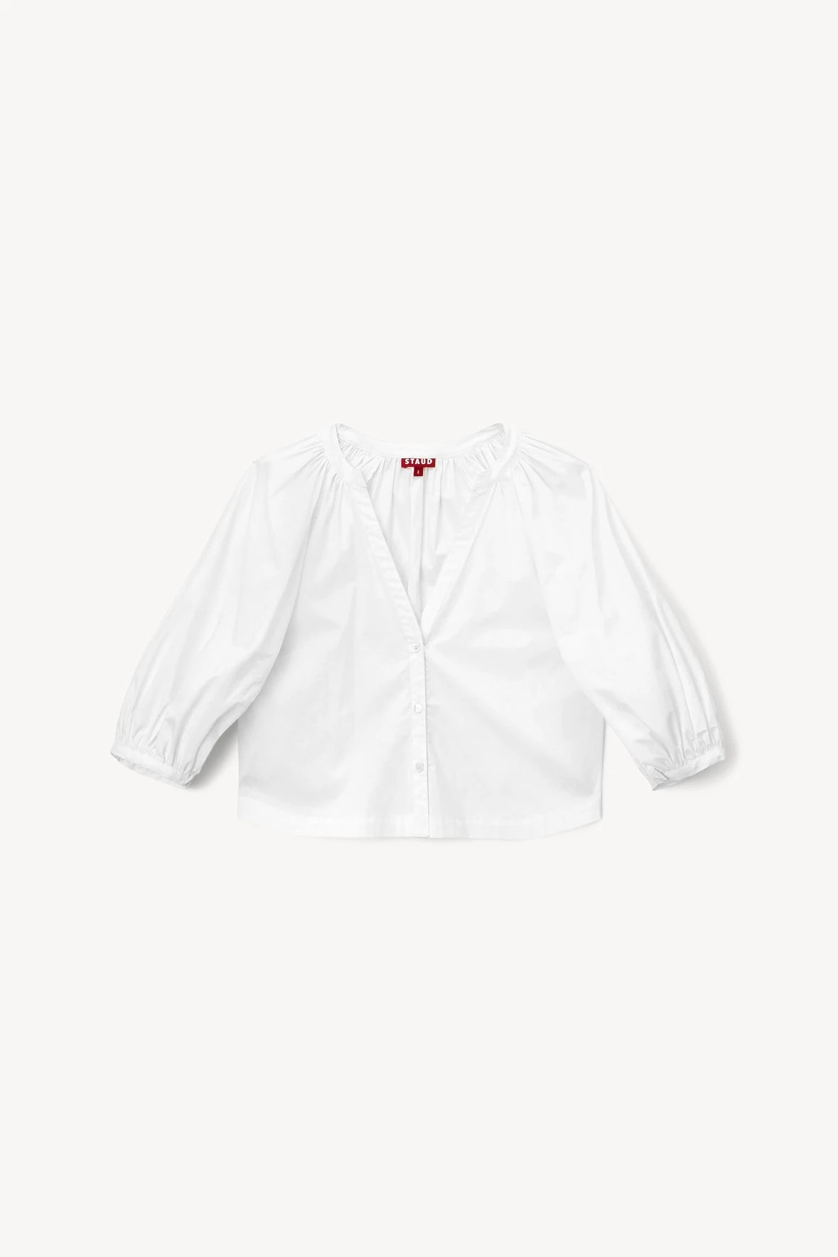 The Dill Top is a cotton poplin button-down with 3/4 puffed sleeves. This classic top can be worn year-round.ย