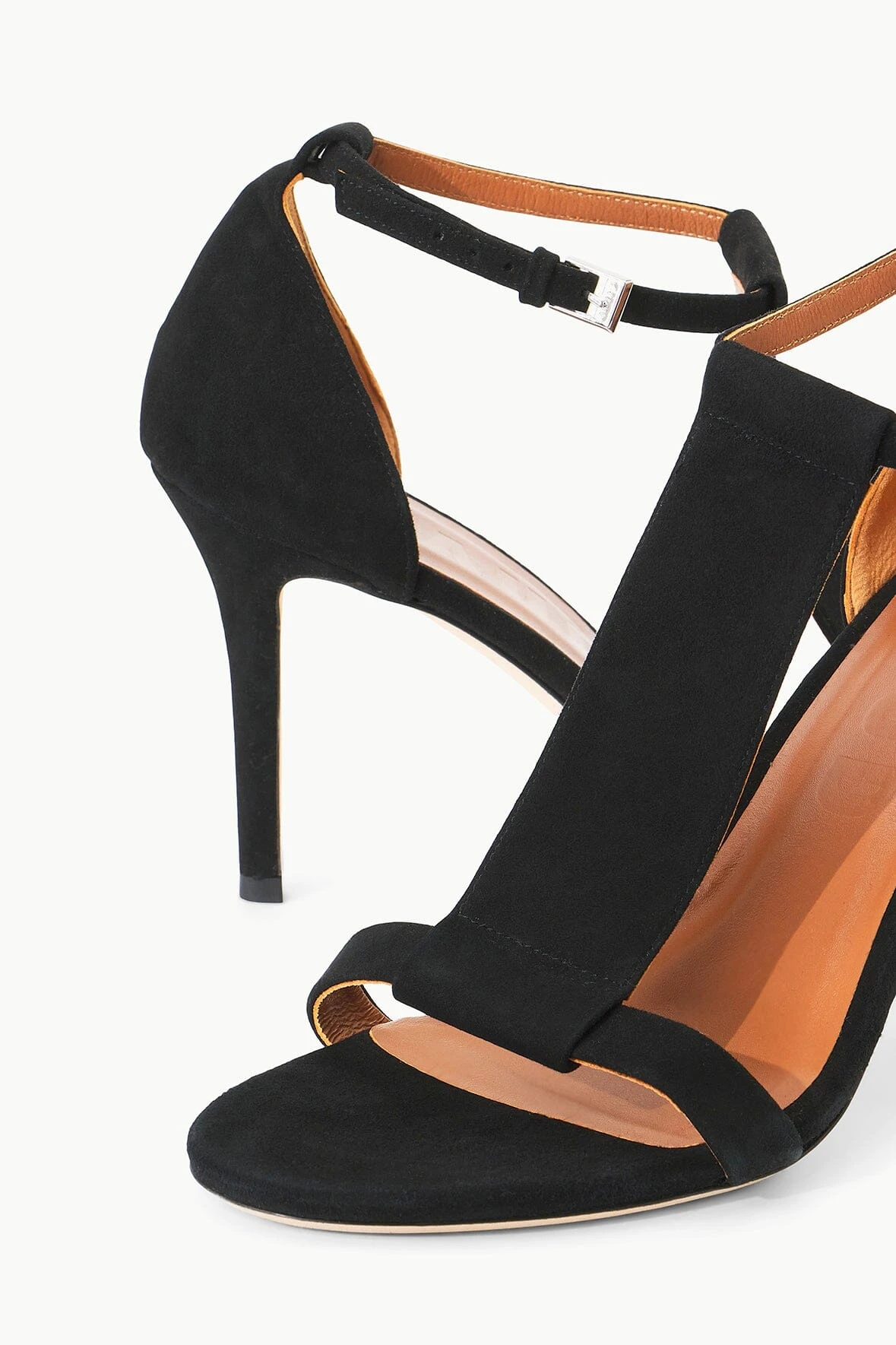 The Isa Heel is a t-strap high heel with an open toe. Crafted in soft suede, the Isa is perfect paired with trousers or a dress.