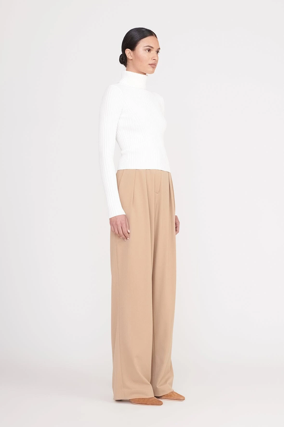 A fitted, long sleeve turtleneck, the Jace Top offers an essential layering piece for any seasonal transition. This style is made out of a rib knit fabric with fully fashioned directional pattern.Â