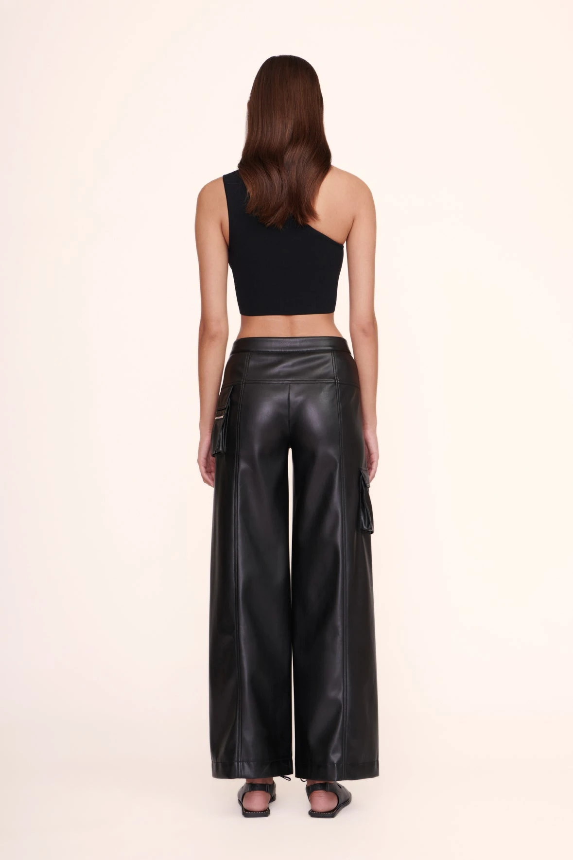 The Lexi is a one shoulder cropped top constructed out of a compact knit fabric.