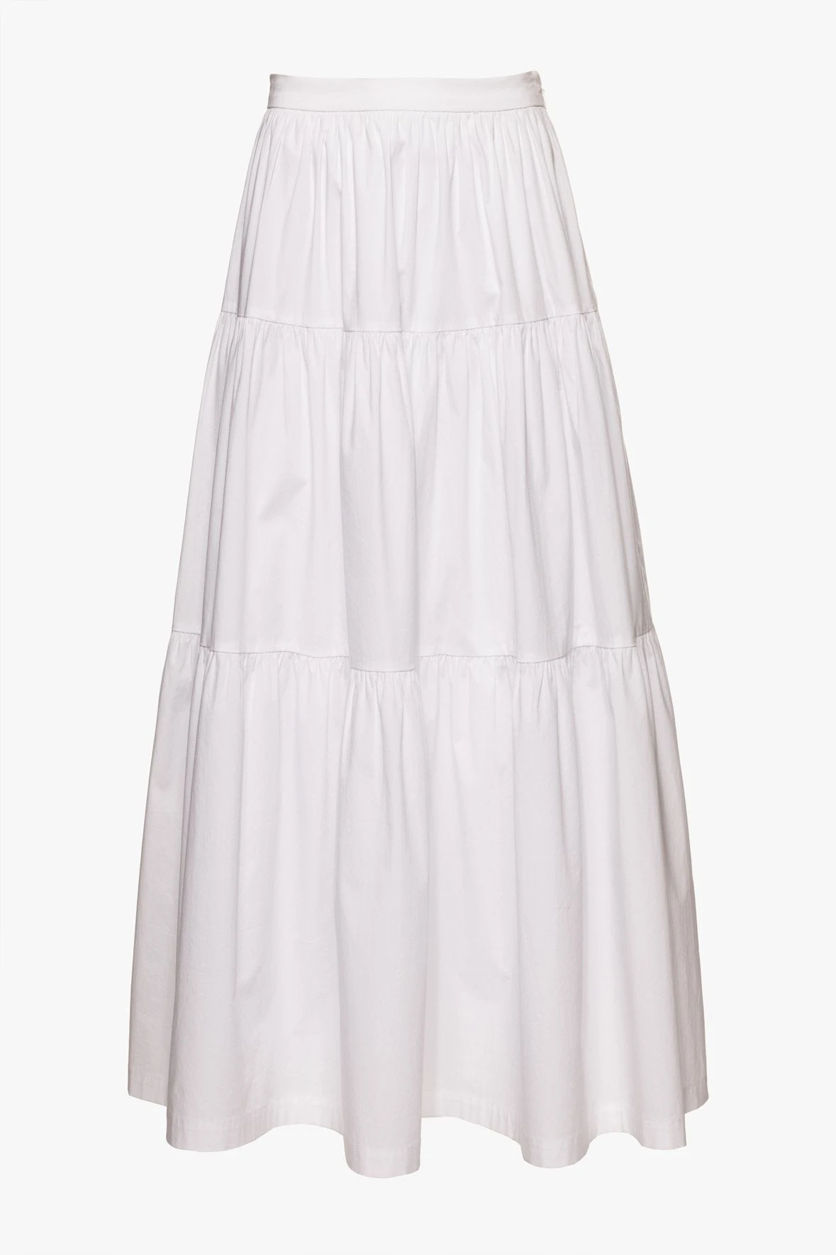 The Sea Skirt is a tiered ankle-length cotton poplin skirt and features a side zipper. This skirt is a closet staple that can be worn year-round.