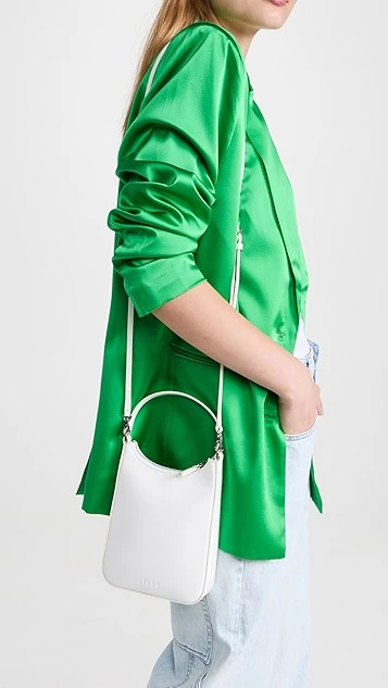 Timeless understatement is the order of the day with this scaled-down STAUD bag, which features a slender north-south silhouette and bright white leather.