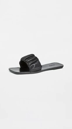Featuring a square toe and a soft ruched leather band, these STAUD slides pair perfectly with everything from dresses to denim, easily elevating any look.