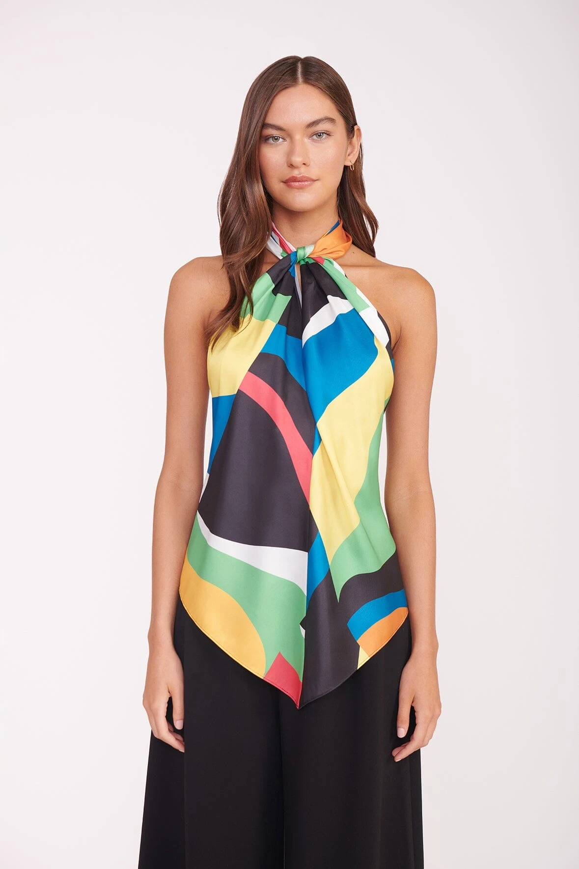The Tropea Top is a halter top that ties at the neck, featuring a handkerchief hem and an elastic back for an easy fit. This Summer top is featured in our Marble Wave print.