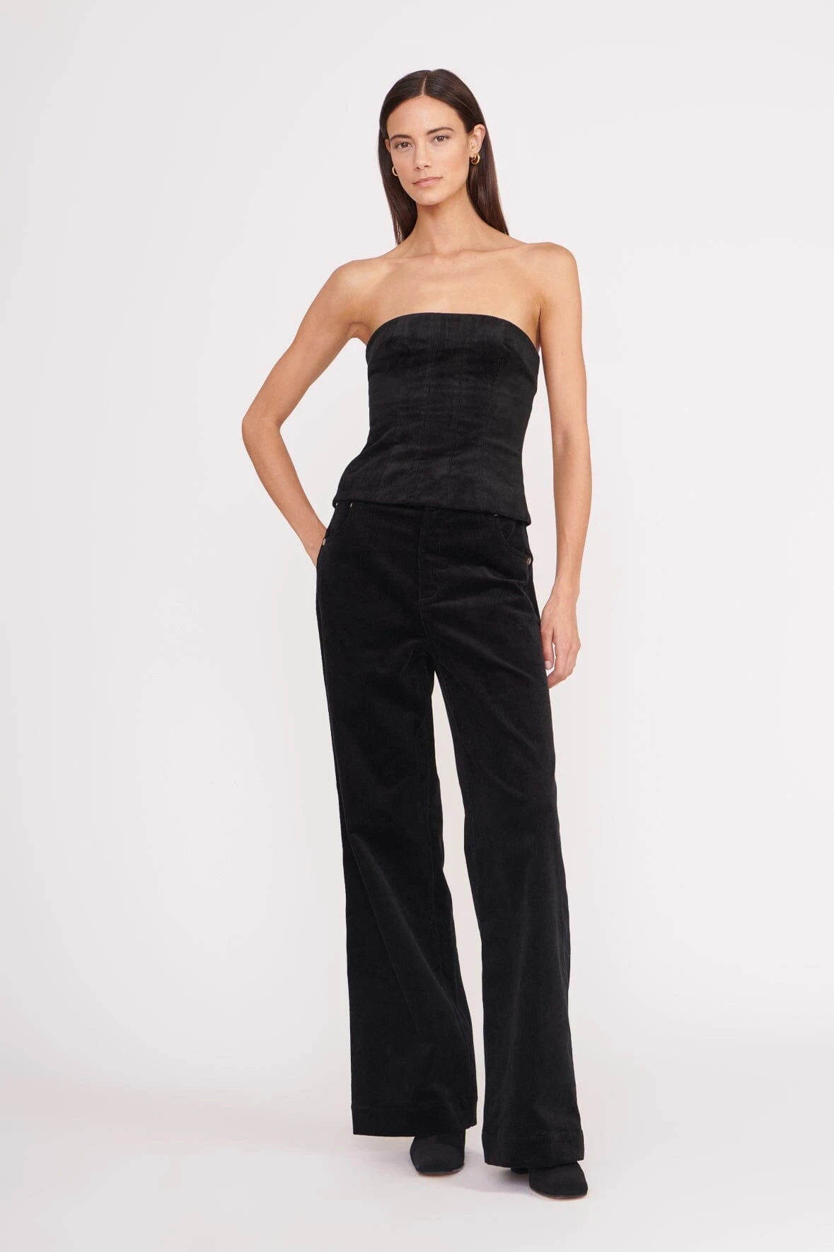 A fitted, strapless tube top with exposed back zipper. Updated in Corduroy, the Woodgrain Top the perfect Fall layering piece. Complete a coordinating set with the Grayson Pant.Â